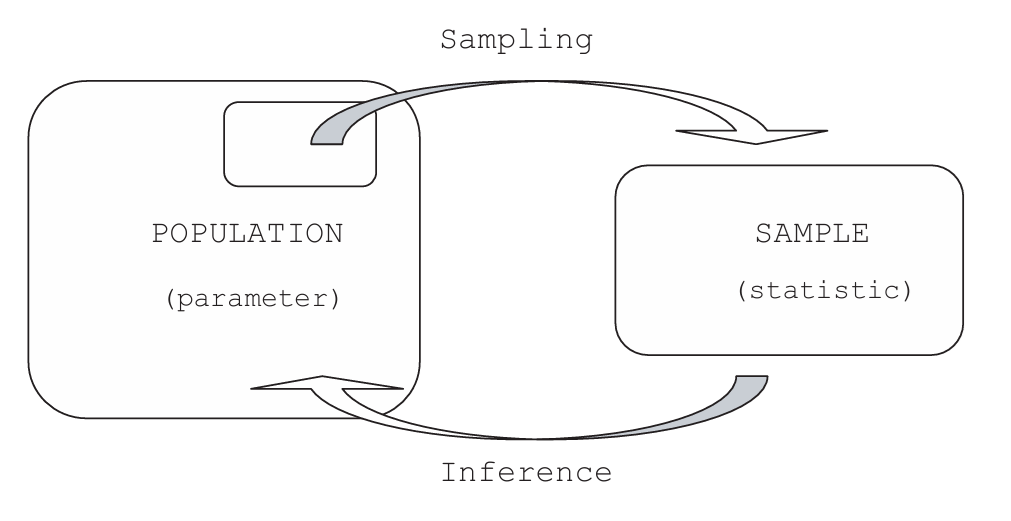 Because it is usually impossible (or impractical) to observe the entire population, a sample is drawn. From this sample, a statistic—a numerical quantity describing some feature of the sample—is calculated. Statistical inference then uses this statistic to say something about the corresponding population parameter.