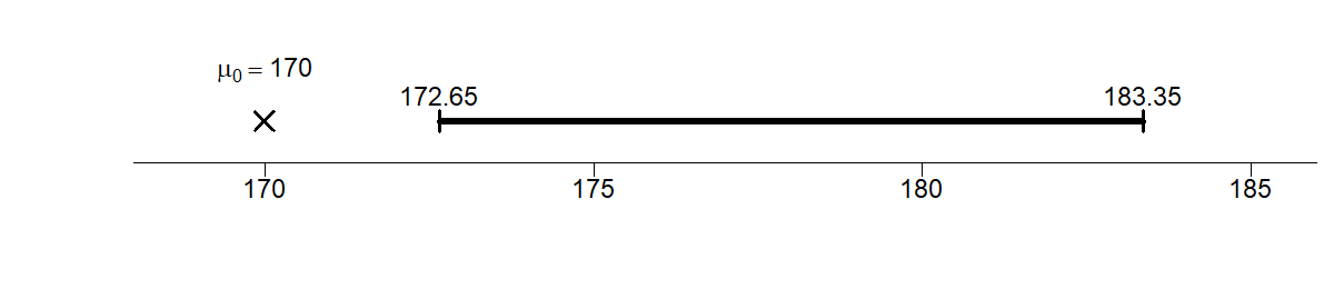 \[ H_0:\mu = 170 \qquad H_a:\mu \neq 170 \]