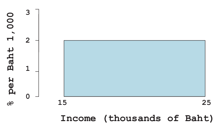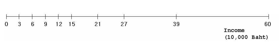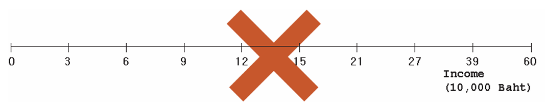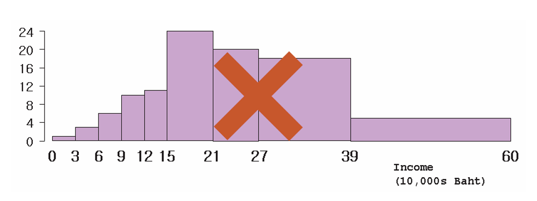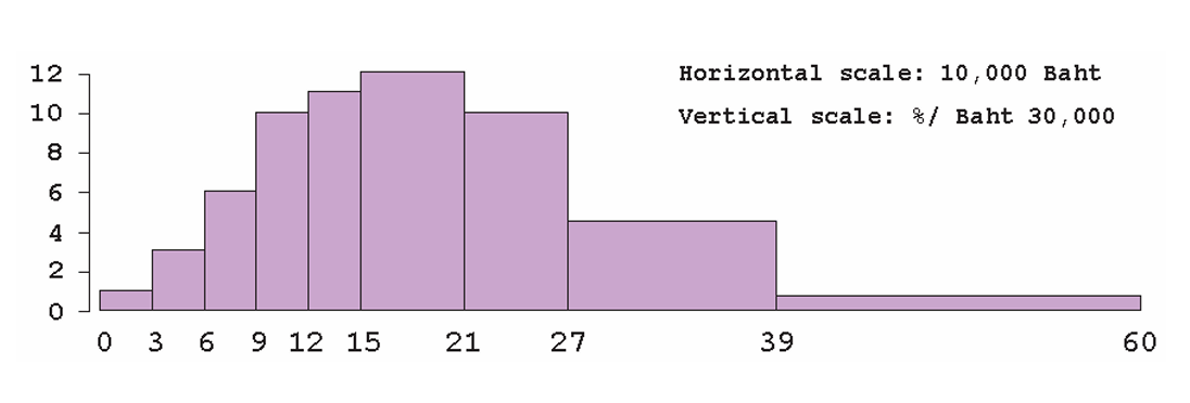 This gives a misleading impression—for example, it appears that there are more families earning over 390,000 baht than under 120,000 baht, which is not correct.
