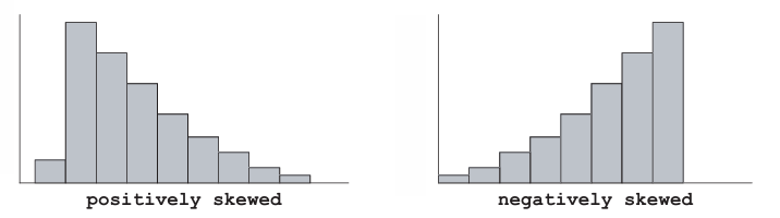 A skewed histogram is one with a long tail extending either to the right or to the left: