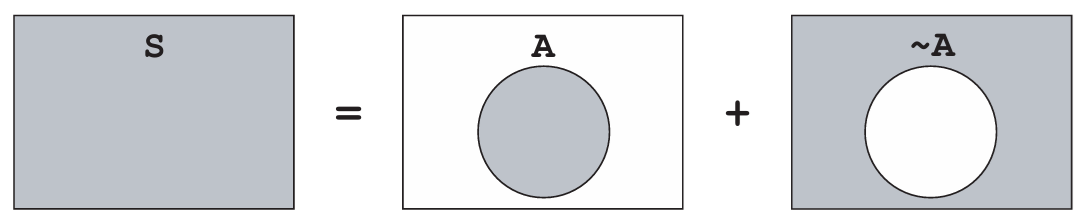 \[ P(\sim A) = 1 - P(A) \tag{6.2}\]