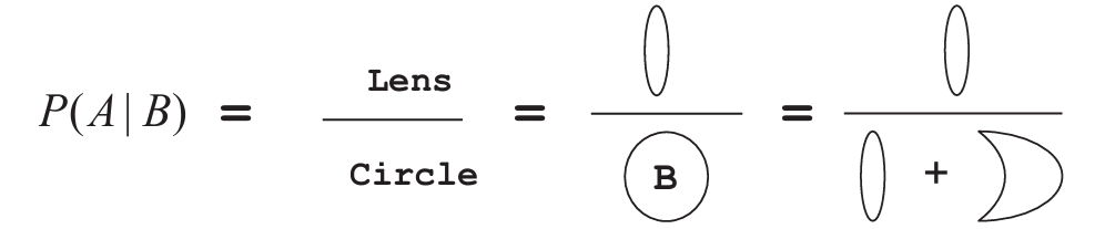 or \(\frac{P(AB)}{P(B)}.\) That is, given B we wish to know A.