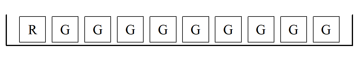 From the above, we draw 5 tickets at random with replacement. But we want exactly 2 R’s and 3 G’s (e.g., \(\fbox{R}, \fbox{R}, \fbox{G}, \fbox{G}, \fbox{G}\) or \(\fbox{G}, \fbox{R}, \fbox{G}, \fbox{G}, \fbox{R}\), etc.). The exact probability can be found using 3 simple steps: